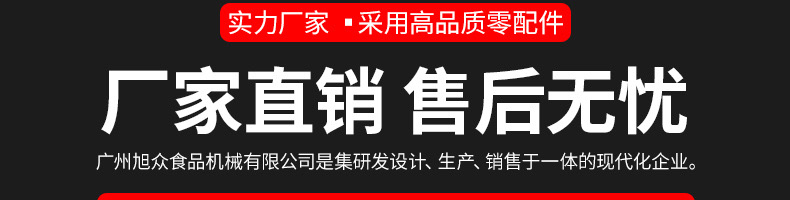 廣州旭眾食品機(jī)械有限公司是一家集科研開發(fā),生產(chǎn)設(shè)計,營銷服務(wù)為一體的現(xiàn)代化生產(chǎn)企業(yè)。現(xiàn)代化生產(chǎn)車間,精湛制造技術(shù),所產(chǎn)機(jī)械歷經(jīng)市場重重考驗,不斷贏得海內(nèi)外客戶的贊譽(yù)。