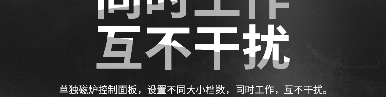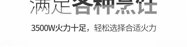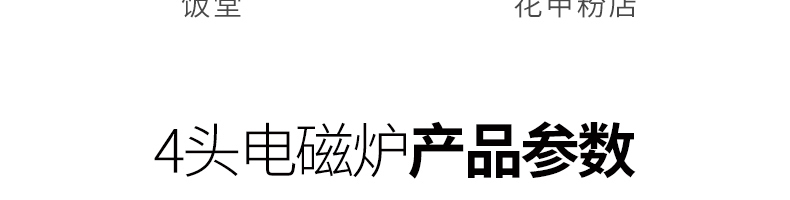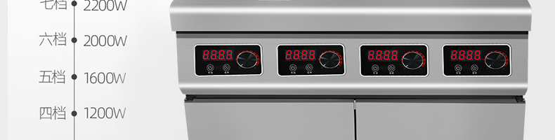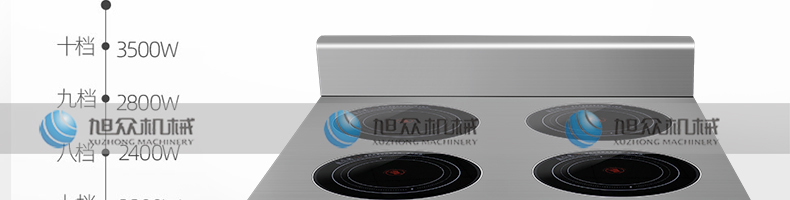 四頭柜式電磁爐,10檔調(diào)節(jié),滿足各種烹飪。3500W火力十足,輕松選擇合適火力。同時工作互不干擾單獨磁爐控制面板,設置不同大小檔數(shù),同時工作,互不干擾。