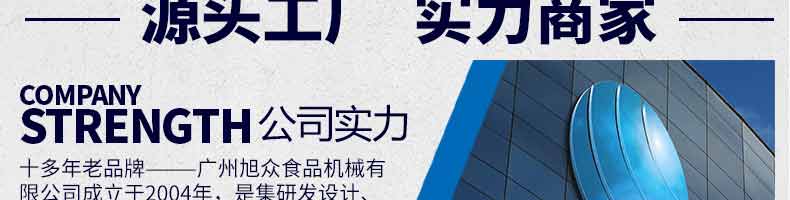 廣州旭眾食品機(jī)械有限公司是一家集科研開發(fā),生產(chǎn)設(shè)計,營銷服務(wù)為一體的現(xiàn)代化生產(chǎn)企業(yè)?,F(xiàn)代化生產(chǎn)車間,精湛制造技術(shù),所產(chǎn)機(jī)械歷經(jīng)市場重重考驗,不斷贏得海內(nèi)外客戶的贊譽(yù)。