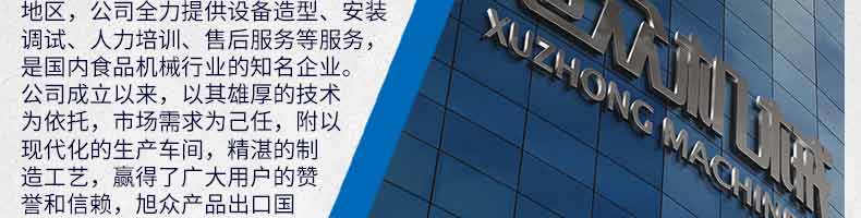 廣州旭眾食品機(jī)械有限公司是一家集科研開發(fā),生產(chǎn)設(shè)計,營銷服務(wù)為一體的現(xiàn)代化生產(chǎn)企業(yè)?,F(xiàn)代化生產(chǎn)車間,精湛制造技術(shù),所產(chǎn)機(jī)械歷經(jīng)市場重重考驗,不斷贏得海內(nèi)外客戶的贊譽(yù)。