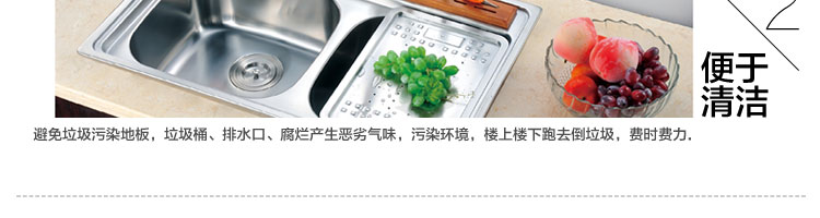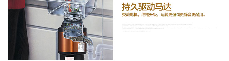 DCLQ38-廚房垃圾處理器,該機(jī)擁有獨(dú)特的粉碎功能,使所有垃圾研磨吸毒真正低于3毫米,用戶不用為管道堵塞而煩惱,粉碎后粗、細(xì)兩種垃圾通過濾孔自動分離,成漿狀的細(xì)垃圾隨水流流入管道,粗的垃圾會稍停留在研磨倉繼續(xù)粉碎,形成粉末狀后,再隨水流流入管道,客戶可以放心使用。