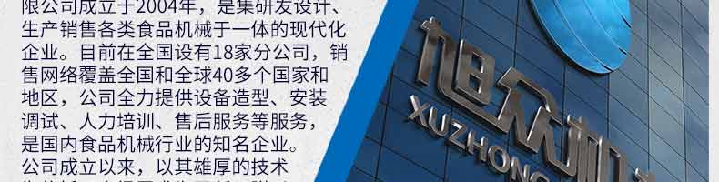 廣州旭眾食品機(jī)械有限公司是一家集科研開發(fā),生產(chǎn)設(shè)計(jì),營銷服務(wù)為一體的現(xiàn)代化生產(chǎn)企業(yè)。現(xiàn)代化生產(chǎn)車間,精湛制造技術(shù),所產(chǎn)機(jī)械歷經(jīng)市場(chǎng)重重考驗(yàn),不斷贏得海內(nèi)外客戶的贊譽(yù)。