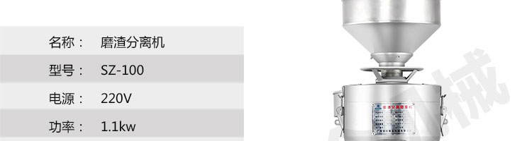 SZ-100-磨渣分離機(jī)系列,適用于把豆制品磨碎分離漿和渣;適用于豆制品廠(chǎng)、飲食服務(wù)業(yè)、食堂、飯店及個(gè)體商戶(hù)使用。