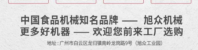 廣州旭眾食品機械有限公司是一家集科研開發(fā),生產(chǎn)設(shè)計,營銷服務為一體的現(xiàn)代化生產(chǎn)企業(yè)?,F(xiàn)代化生產(chǎn)車間,精湛制造技術(shù),所產(chǎn)機械歷經(jīng)市場重重考驗,不斷贏得海內(nèi)外客戶的贊譽。