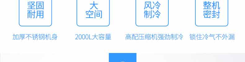 XZ-速凍柜,實力派,不妥協。4大強勢來襲,源自生活所需。堅固耐用、大空間、風冷制冷、整機密封、加厚不銹鋼機身,2000L大容量,高配壓縮機強勁制,令鎖住冷氣不外漏。