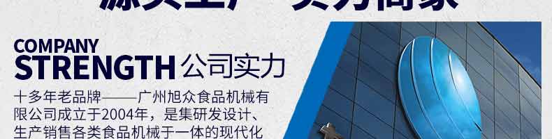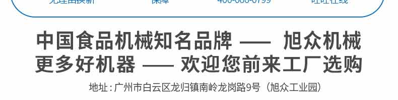 廣州旭眾食品機械有限公司是一家集科研開發(fā),生產設計,營銷服務為一體的現代化生產企業(yè)。現代化生產車間,精湛制造技術,所產機械歷經市場重重考驗,不斷贏得海內外客戶的贊譽。